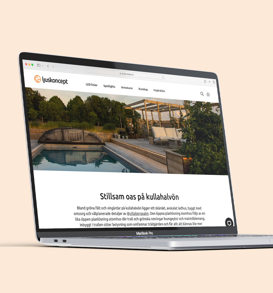 Webbplatsen är en central del i Ljuskoncept där försäljningen är lika viktig som varumärkesbyggandet. Eftersom LED-strips och belysning kan vara tekniskt, tråkigt och svårhanterat ligger istället fokus på att inspirera kund med mjuka värden och inbjudande bilder. Genom att också erbjuda guider, installationstips och ett community vill Ljuskoncept vara varumärket med expertis och kunskap att förverkliga ljusprojekt för alla.
