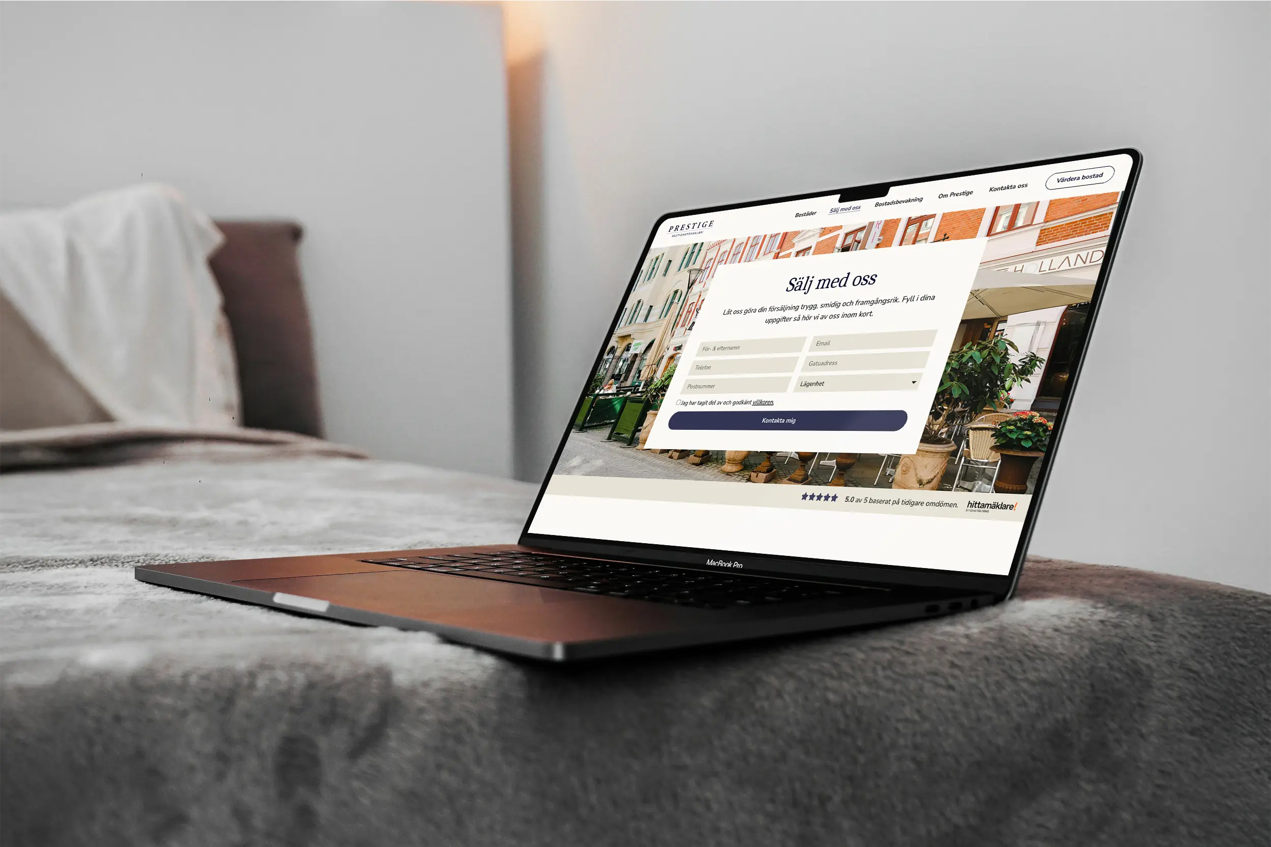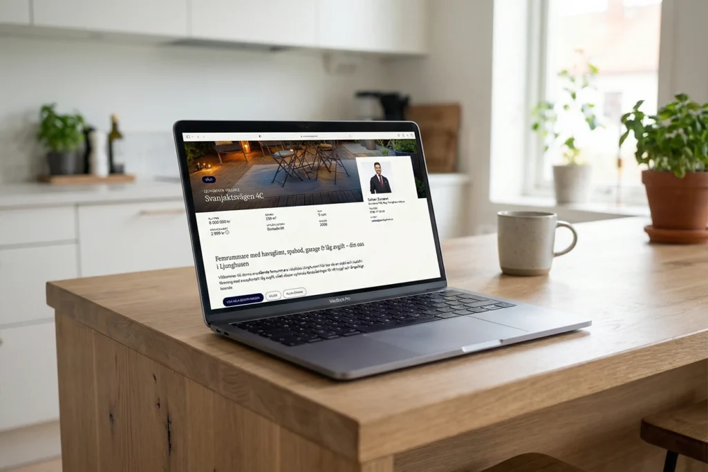 Prestiges hemsida byggdes som ett av mäklarens viktigaste verktyg: Ett nav för att samla leads, bygga relationer och förmedla trygghet till både säljare och köpare. Fokus låg på att lyfta fram varumärkets exklusiva känsla genom ett avskalat formspråk, hög visuell kvalitet och en strukturerad användarupplevelse.