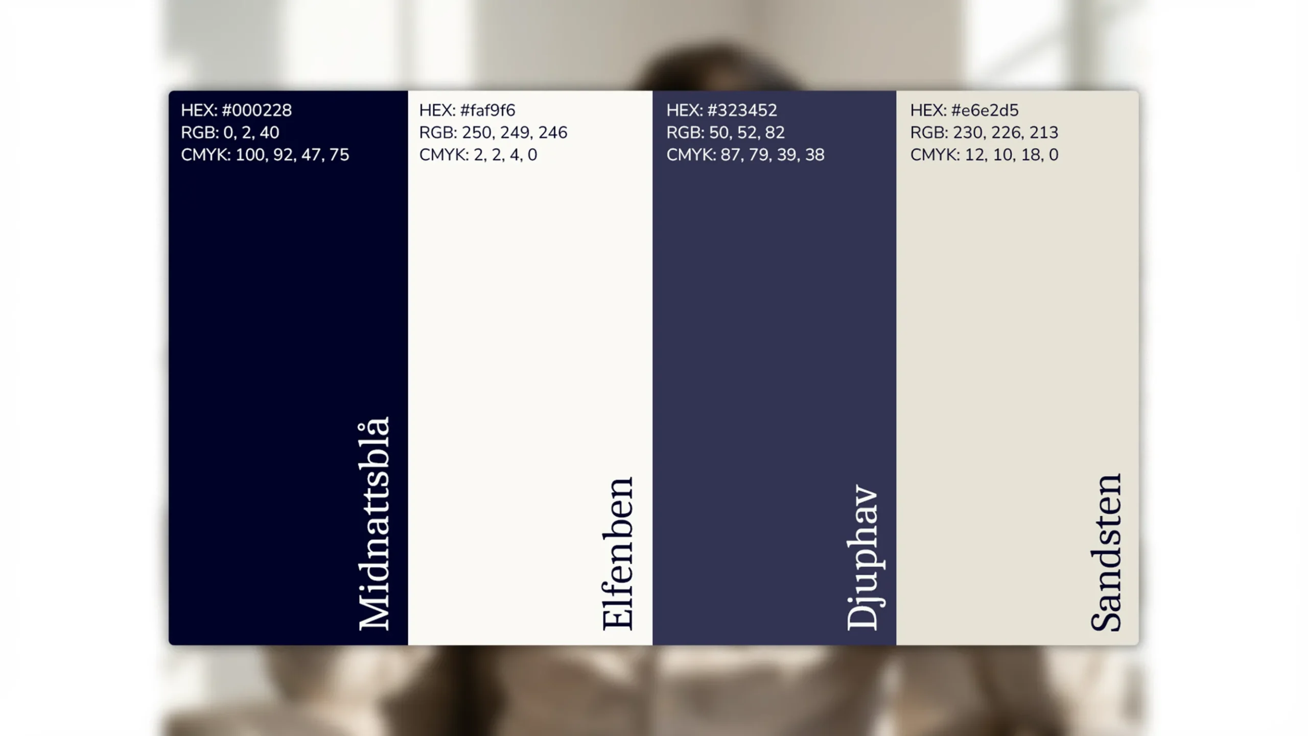 Utifrån den befintliga logotypen och blå tonen i varumärket byggdes en färgpalett med djupblått som grund, kompletterad med nyanser av blått och varm beige. Allt för att skapa en modern, inbjudande och förtroendeingivande känsla.